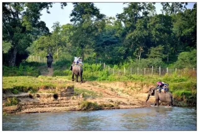 奇旺森林公园位于尼泊尔首都加德满都120公里的雷普提谷地,是尼泊尔最大的野生动物园,也是亚洲最大的森林公园之一。因为政府命令禁止捕杀动物,这里便成了大象、犀牛、鳄鱼们的天堂。森林中,翠蓝色的羽翼鸟在褐色树杈的衬托下分外醒目,孔雀悠闲地在草地上漫步,鳄鱼爬在岸边四处张望,红嘴鹮在离泽鳄五、六米的地方饮水。沿公园内的河流一路漂流而下,不长的距离和时间里,可能看到了不下十种鸟类。据统计,在奇旺森林公园生活有五百多种鸟类,多为西伯利亚逾冬而来的候鸟,每年三月过冬的鸟儿尚未飞走,而夏季的候鸟又都飞来了,来来往往,此起彼伏。