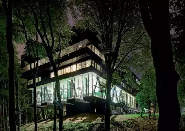 这是一个集健身,水疗等多功能、建筑面积达27000平米的酒店,它位于瑞士Arosa山底的馥郁丛林,呈独特的立体船帆造型。它友好地整合周围村庄、树木、山脉等视觉元素并用“机械树”采光,使得健康中心在夜晚格外醒目。