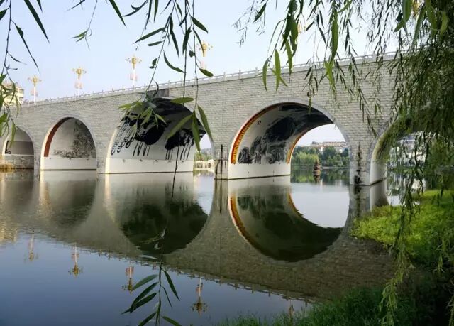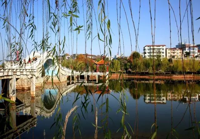 其间15座桥梁,有直桥、弯桥,有拱桥、平桥,有桥边桥、桥下桥,桥中桥,供你观阅、穿越、翻越,供你仰望、平视、俯瞰,供你趟步、行船。