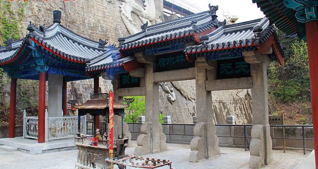五龙祠是白龙潭景区里的龙王庙。它始建于北宋咸平年间,因供奉有小白龙及四海龙王,所以被称作五龙祠。现在祠前的石坊上留有乾隆和嘉庆的御笔碑,嘉庆还曾亲自到这里拈香祭拜。