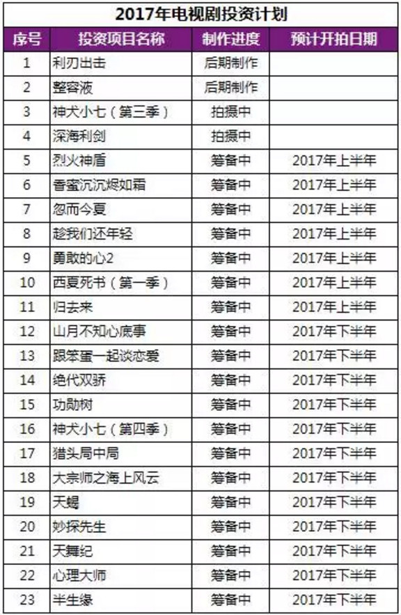 其中,电视剧模块的子公司完美影视,以影视制作和艺人经纪为主,通过联合成立工作室的形式,与多位知名导演及制片人签订了独家合作协议。这其中,包括赵宝刚的鑫宝源影视、郭靖宇的完美建信和滕华涛的华美时空等6个影视制作及工作室。