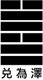 倒数第一阳爻:和悦,吉。 倒数第二阳爻:以诚信使人喜悦,吉,悔恨消失。 倒数第三阴爻:来讨好,凶。 倒数第四阳爻:喜悦的商谈虽末定,疥疮的病有去掉的可喜。 倒数第五阳爻:相信剥落的说法,有危险。 最上阴爻:引我喜悦。