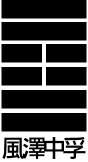 | 中孚:豚鱼吉,利涉大川,利贞。 初九:虞吉,有他不燕。 九二:鸣鹤在阴,其子和之,我有好爵,吾与尔靡之。 六三:得敌,或鼓或罢,或泣或歌。 六四:月几望,马匹亡,无咎。 九五:有孚挛如,无咎。 上九:翰音登于天,贞凶。 |