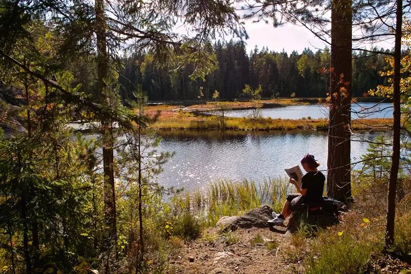 努克西奥森林公园位于艾斯堡市郊,与首都赫尔辛基近在咫尺,面积42平方公里,适合游客游览大都会之余,亲历自然林野。努克西奥是粗糙山石与绿树的结合产物,位于橡树森林与北极南部森林间地带,具有典型的季候变化特征。公园范围内随处可见冰河时期形成的沟壑峡谷,嶙峋的山石上长满地衣和松树,部分山峰高度达海拔110米,丘陵森林间保育有木百灵鸟(Wood Lark)等濒临绝种的鸟类。林间不时有飞松鼠(Flying Squirrels)出没,那些从高树上靠张开手脚间毛皮作滑翔掣动的松鼠,其形态得意可爱,非常讨人喜欢,努克西奥也就以这些精灵作为了公园的标志。