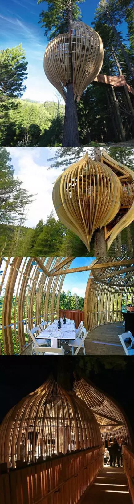 这是一个新西兰的神秘餐厅,外观像一个即将破茧而出的蝶蛹。入夜,灯光把餐厅映照得玲珑剔透,像一盏盏灯笼在为夜归人引路。∇
