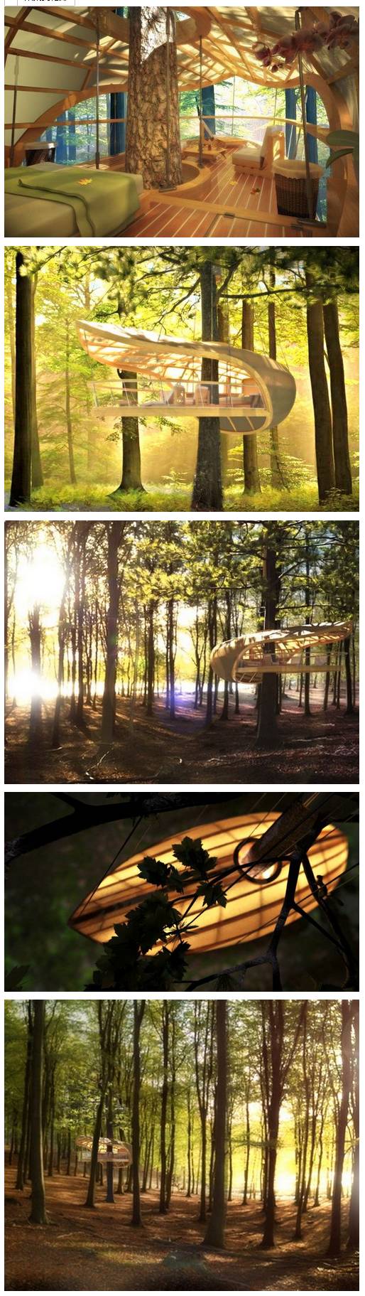 树屋旅馆,位于苏格兰尼斯湖畔。好看得走不动路了。∇
